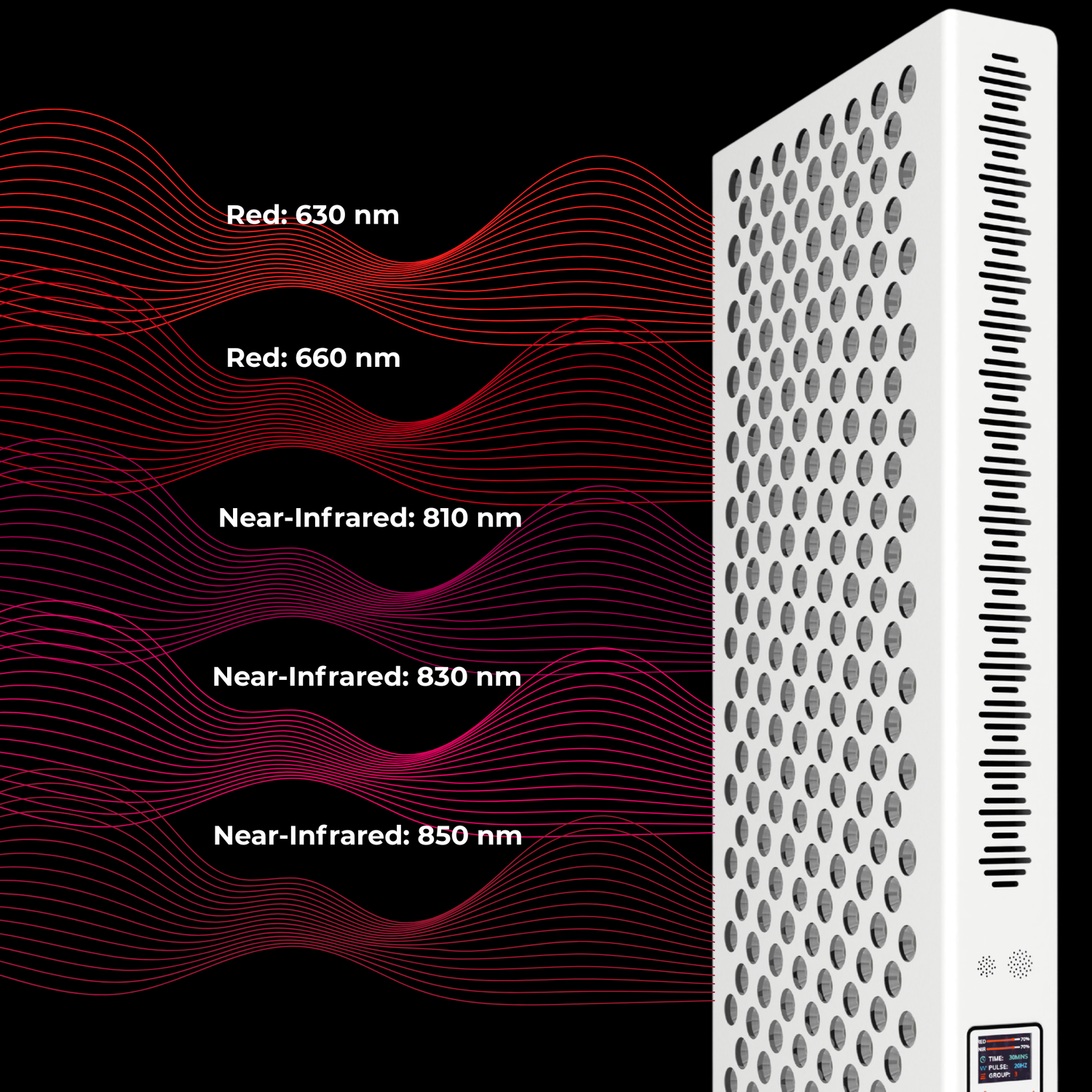 Science BackedUnlock the ultimate in red light therapy with RED 630nm, 660nm and Near-Infrared 810nm, 830nm and 850nm wavelengths! Clinically proven and power-packed, they penetrate skin and muscles, accelerating healing, reducing wrinkles, and easing pain.